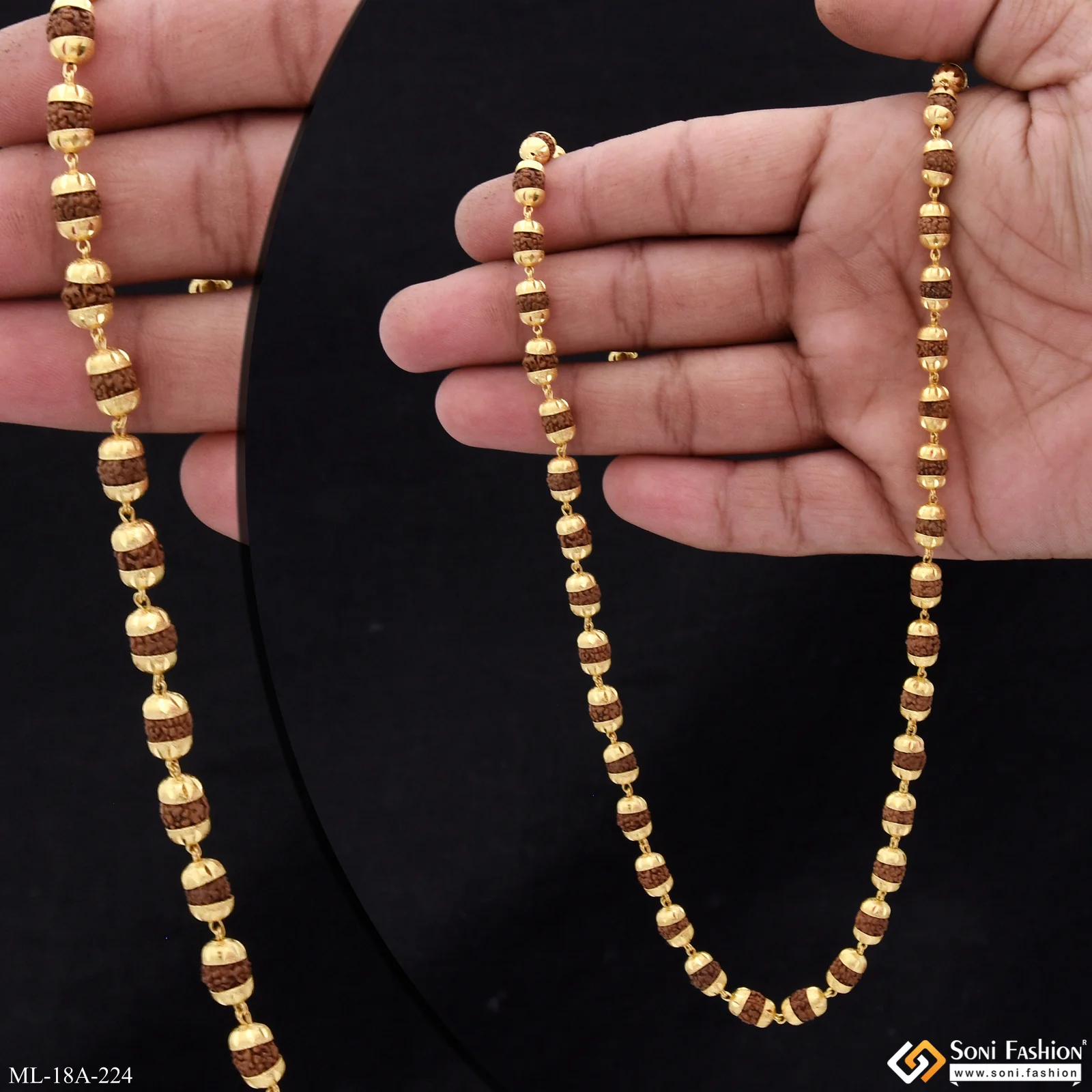 1 Gram Gold Forming V Cut Artisanal Design Rudraksha Mala for Men - Style A224