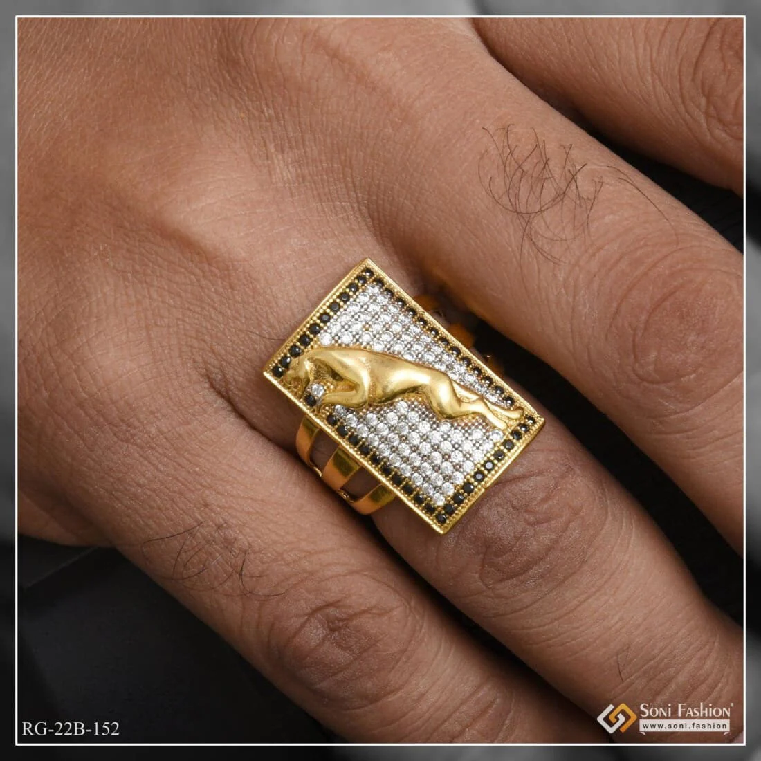 1 Gram Gold Forming Jaguar with Diamond Gorgeous Design Ring for Men - Style B152