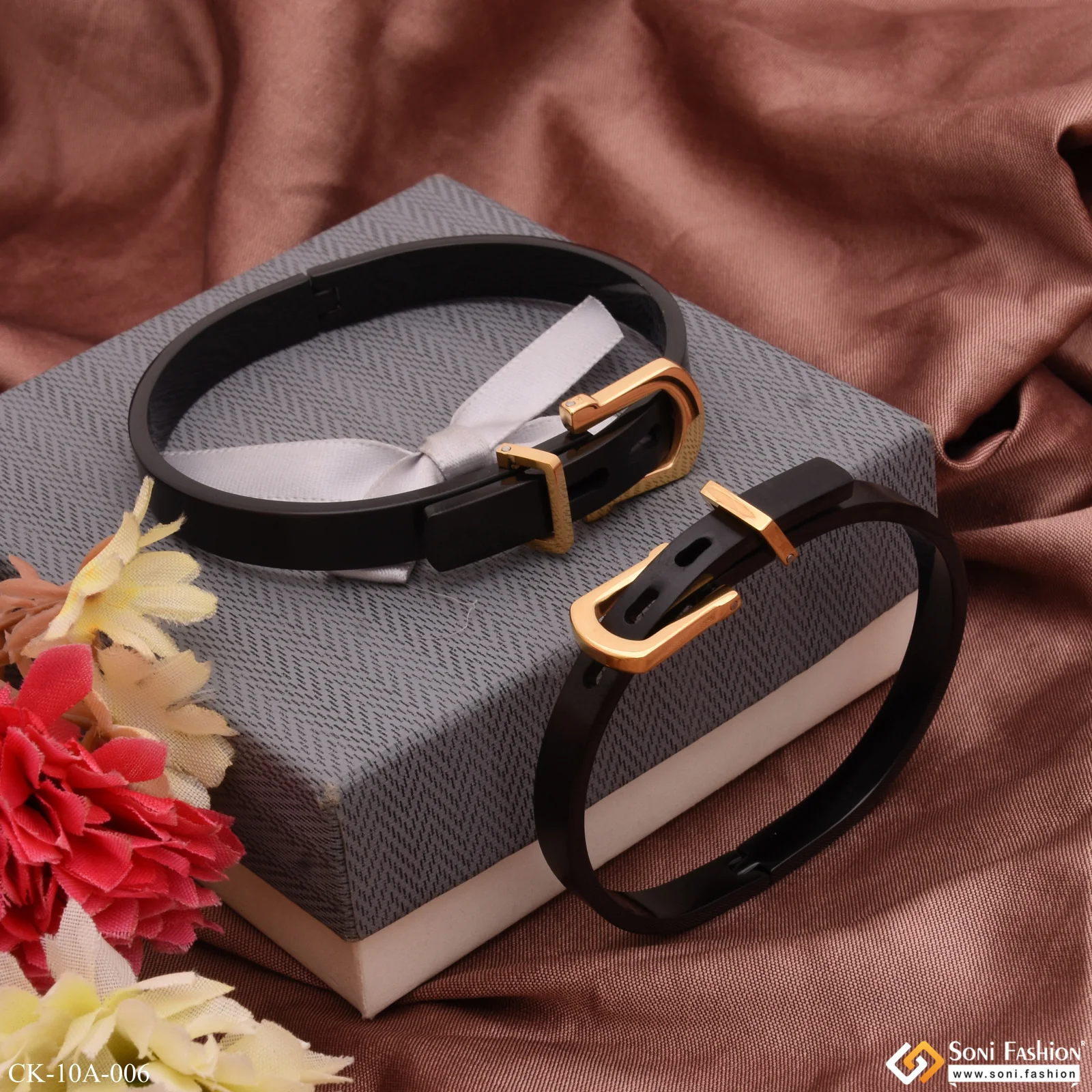 -70%Eye-catching Design Belt Black & Golden Color Couple Kada - Style A006—