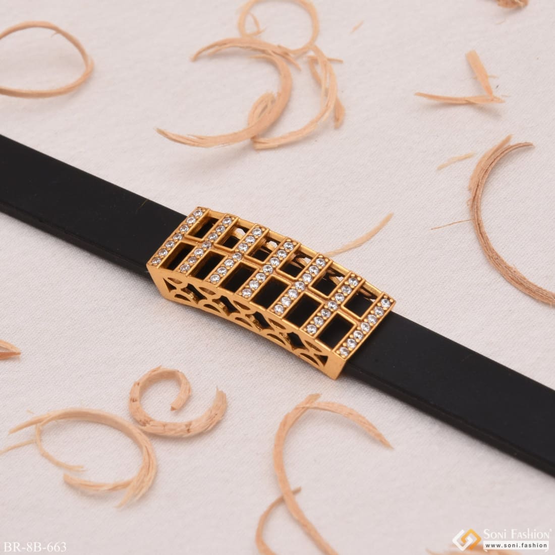 Decorative Design Best Quality with Diamond Gold Plated Rubber Bracelet - Style B663
