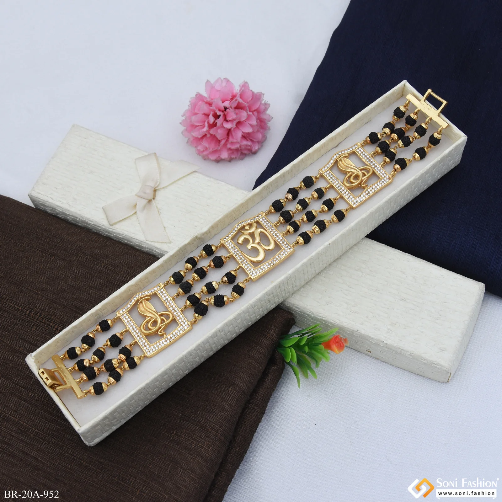 Goga Maharaj with Rudraksha Lines Glamorous Design Multistrand Quality Gold Plated Bracelet - Style A952