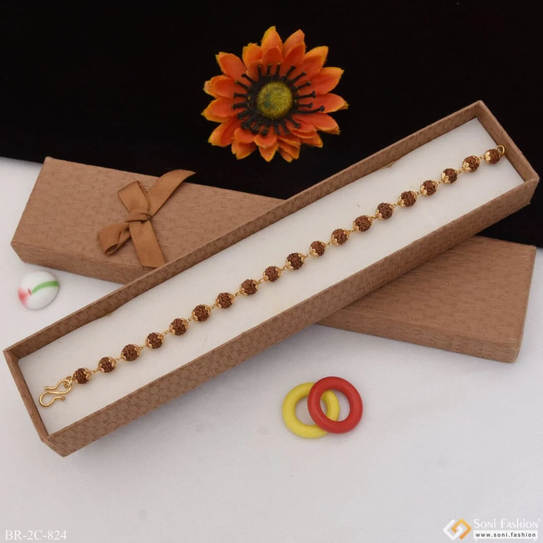This handmade bracelet for men features a trending style and spiritual Rudraksha beads that are gold plated with Hid_Reg_Plating for a shining finish. The brown Rudraksha beads have a textured look and the gold plating keeps it looking latest.