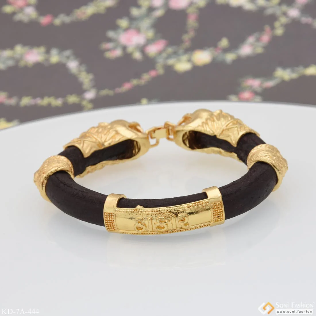 Two-Lion Face & Thakar Antique Design Gold Plated Genda Kada for Men - Style A444